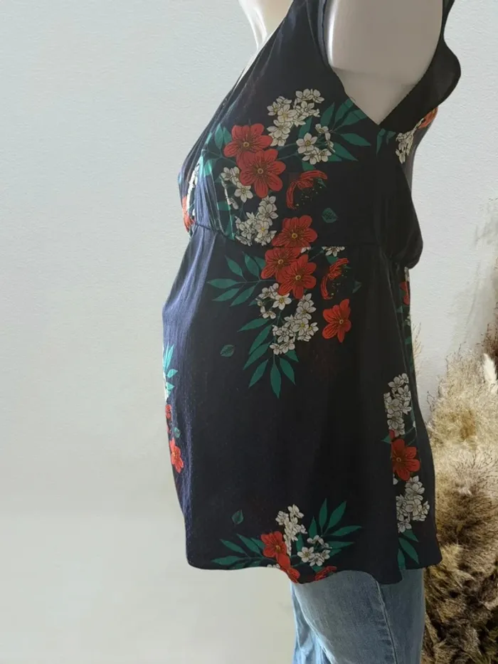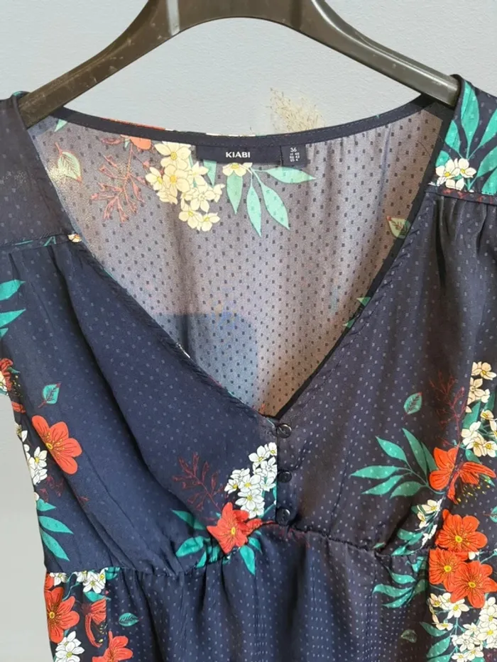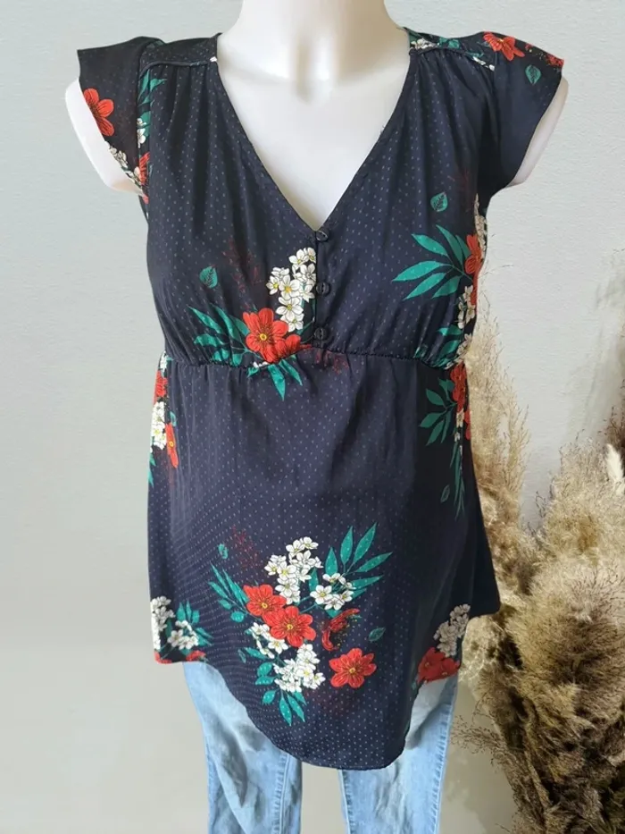 Blouse fluide de grossesse fleurie effet satinée Taille 36/S Marque : kiabi Couleur : marine et fleurs Manche courtes