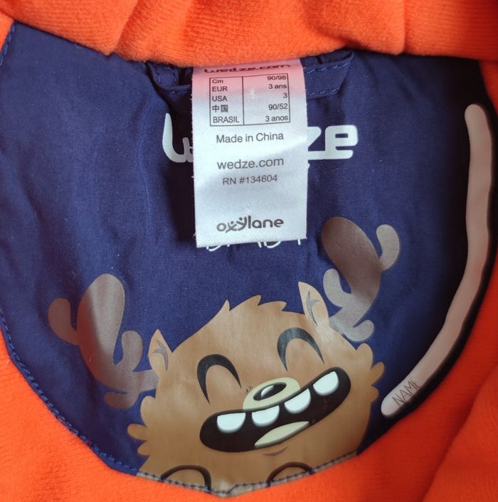 Combinaison ski enfant 3 ans garçon ou fille Avec un joli dessin dans le dos. Combinaison très sympa pour les jeunes enfants. Marque wedze decathlon