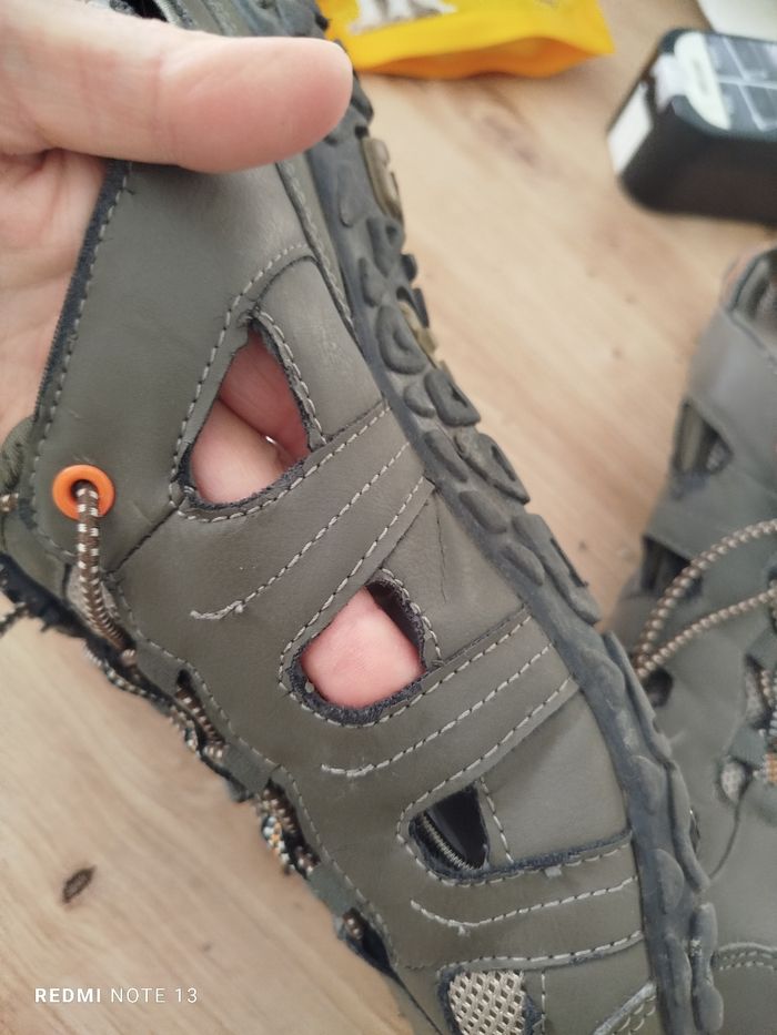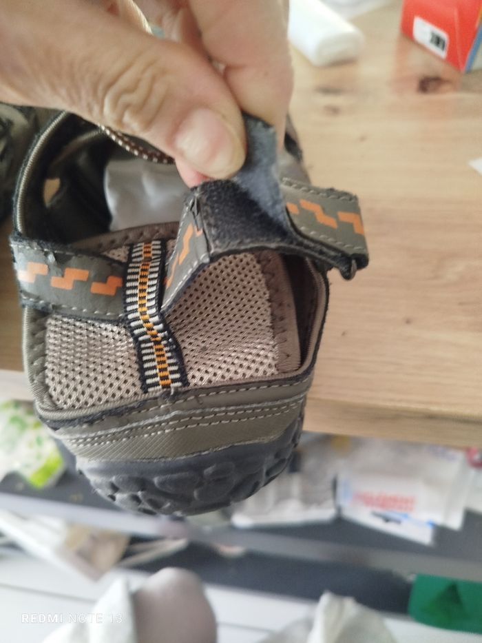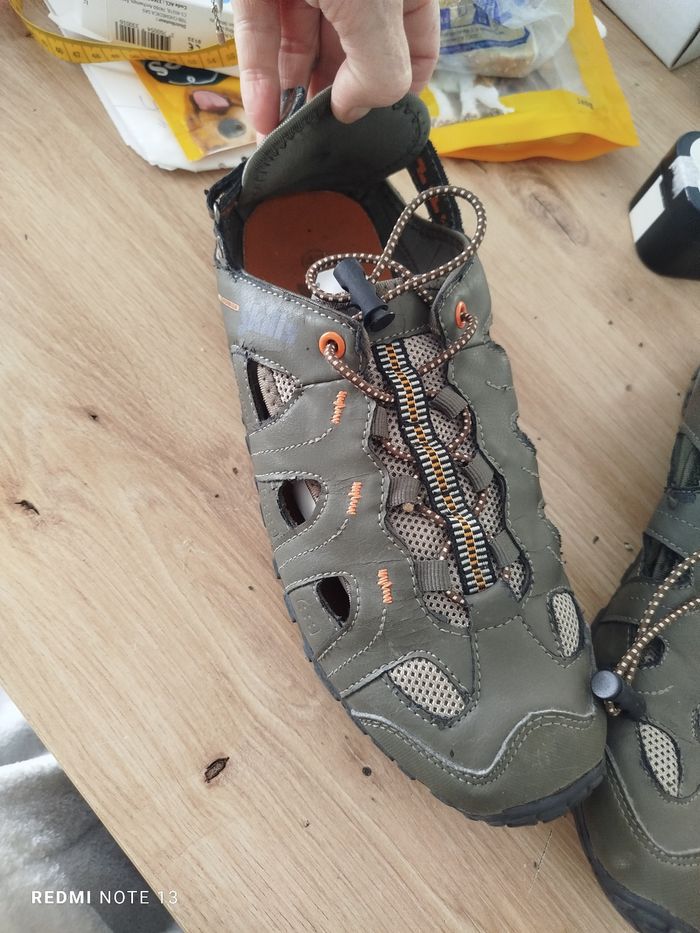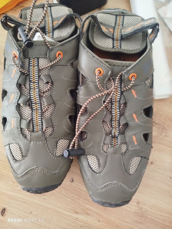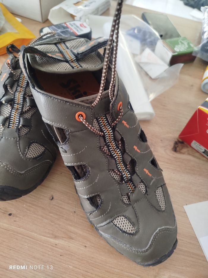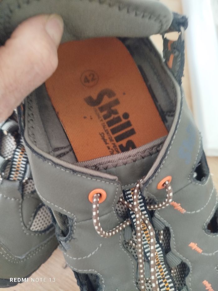 #kytie42chaussurehomme. Basket chaussures taille 42 de marque skills en état parfait comme neuf en cuir marron gris ouvert sur les côtés le talon est avec velcro réglable et le laçage et un cordon élastique réf 214