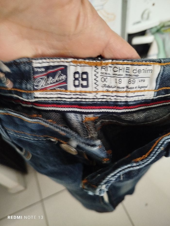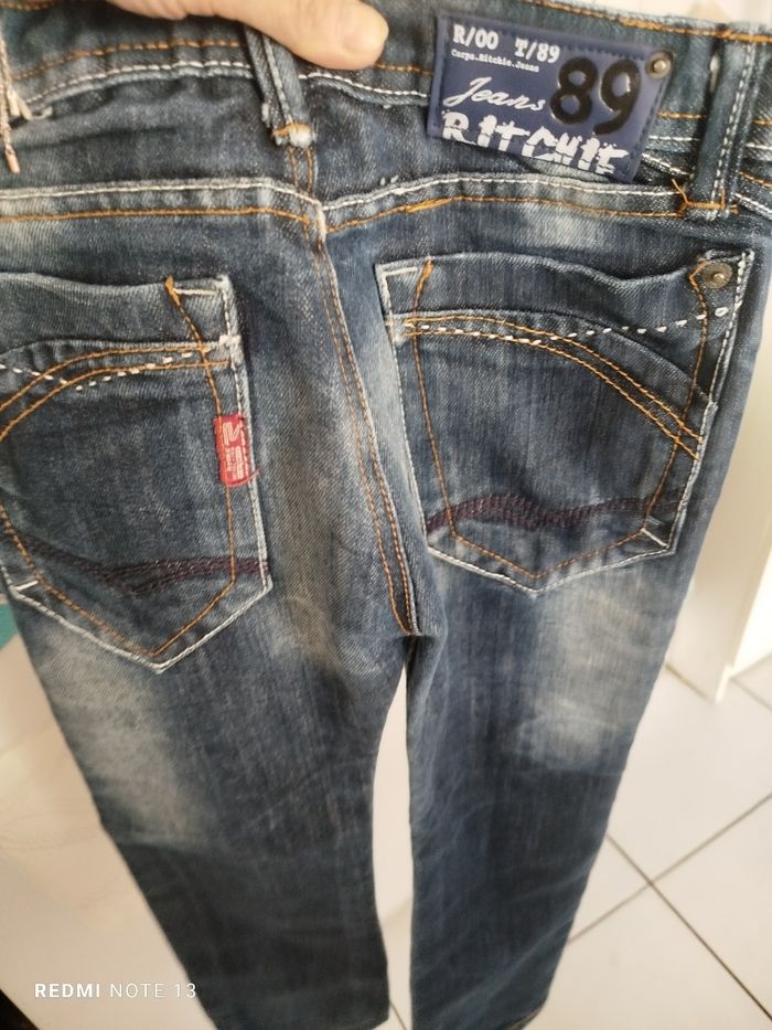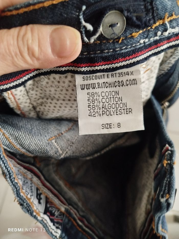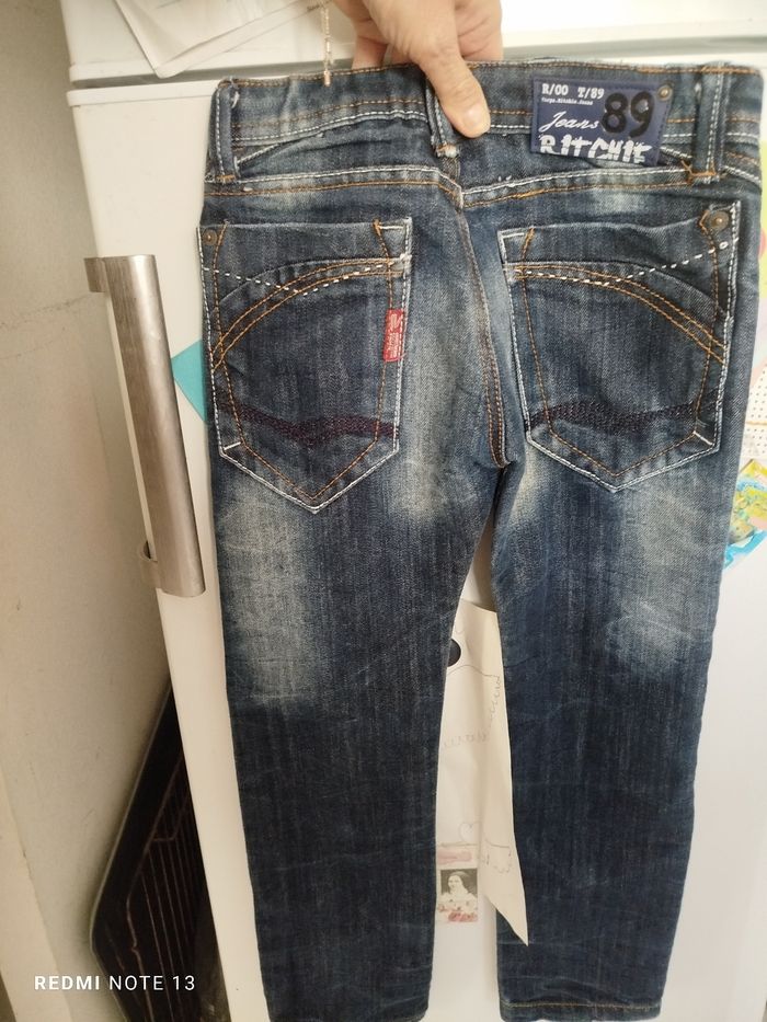 #kytie8ansgarcon. Magnifique jean taille 8 ans de margue ritchie on est à neuf à la mode taille réglable zippé avec un bouton de poche avant et arrière ref 14