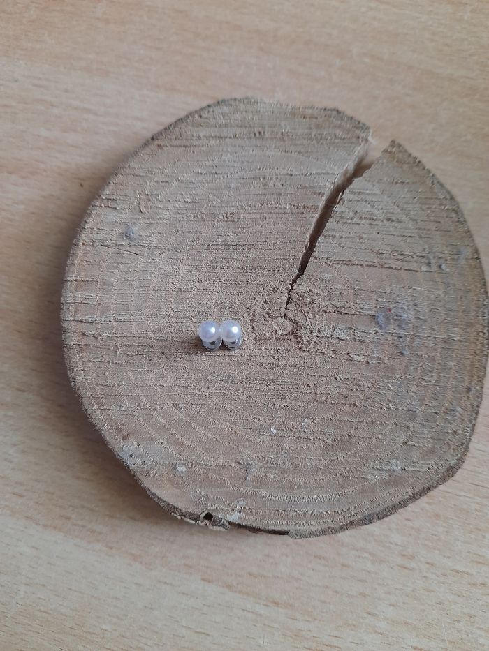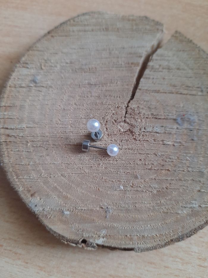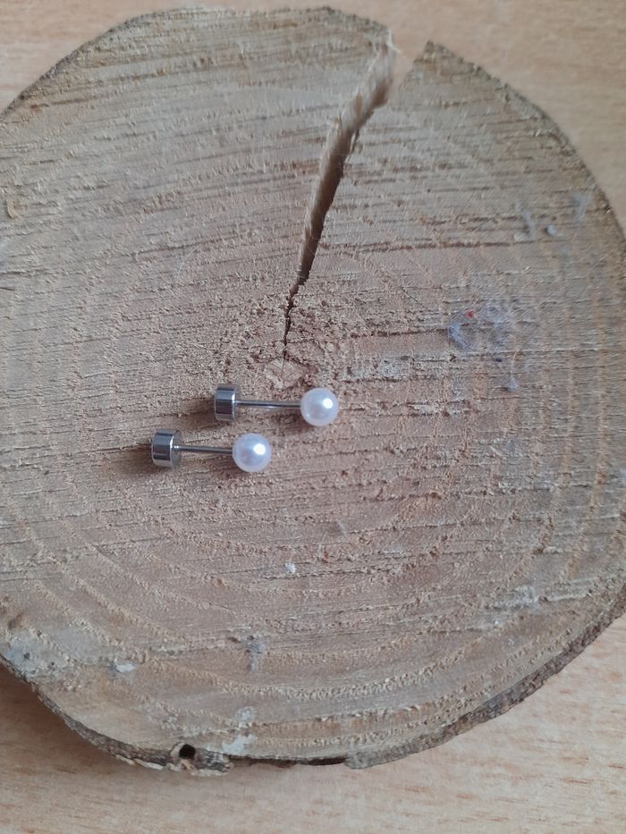 Jolie paire de petite boucles d'oreilles rondes perles blanches en acier inoxydable fermoir à vis neuf jamais porté