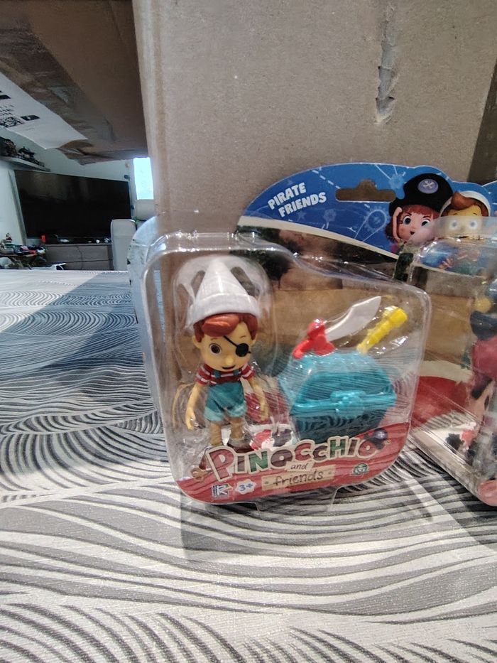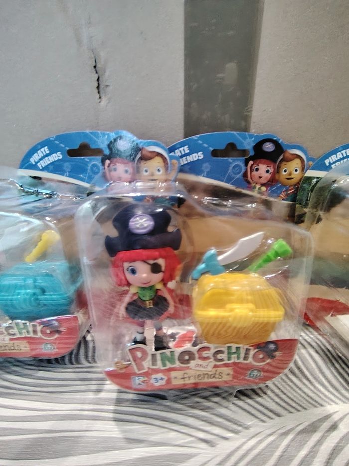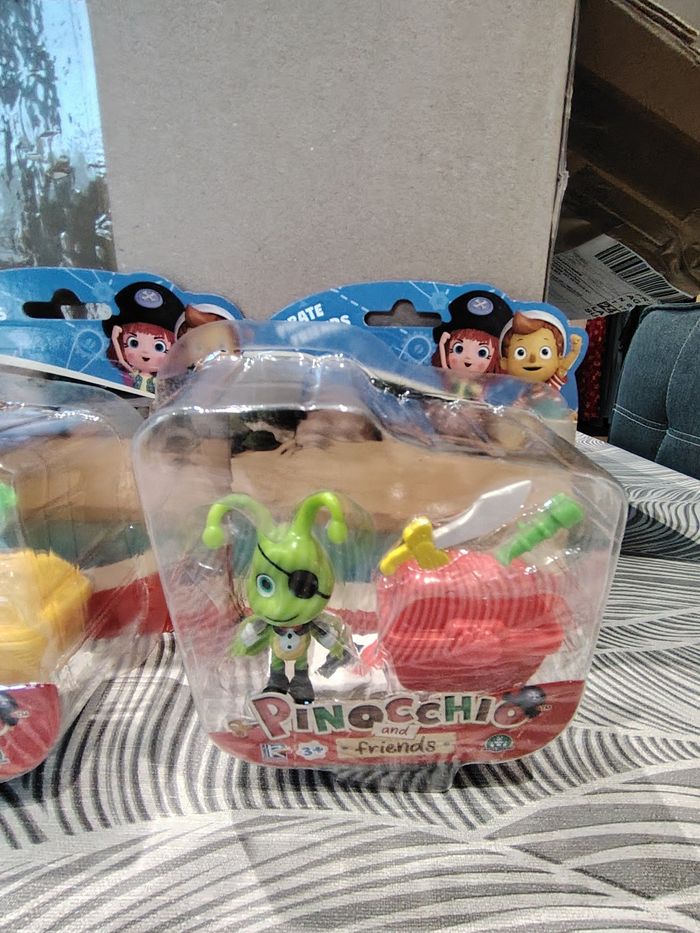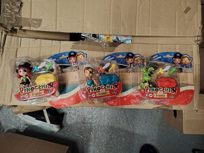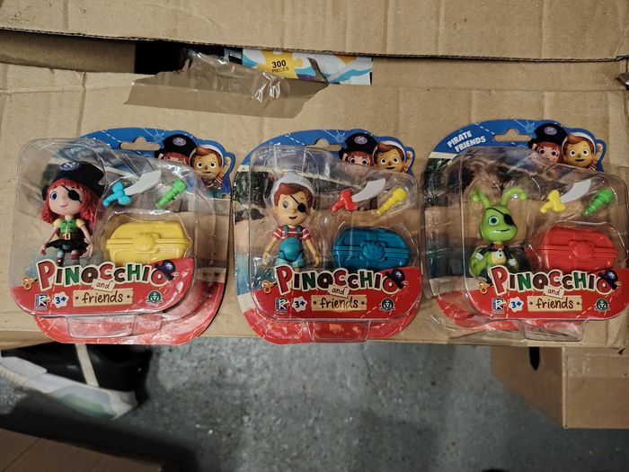 Lot de 3 figurines Pinocchio et ses amis Ninotte et animaux pirates. Les boîtes sont ouvertes, mais les figurines n'ont jamais été utilisées.