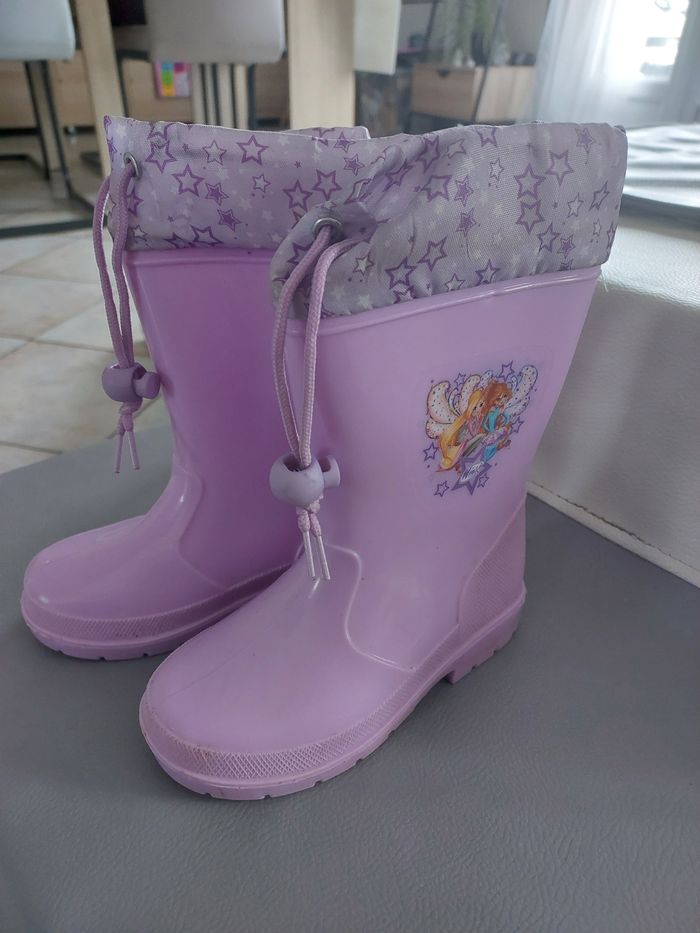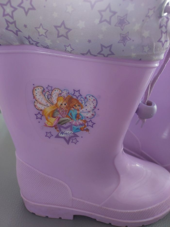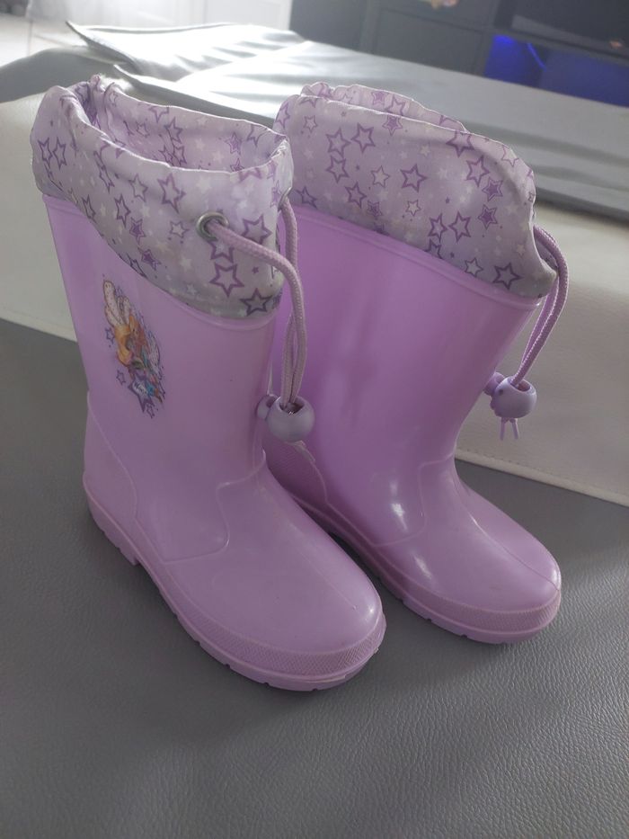 Bonjour Je vends cette paire de bottes de pluie Marque winx Très bon état Pointure 26 Pas craquée