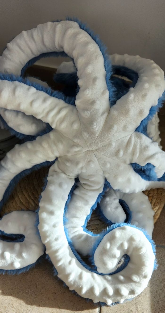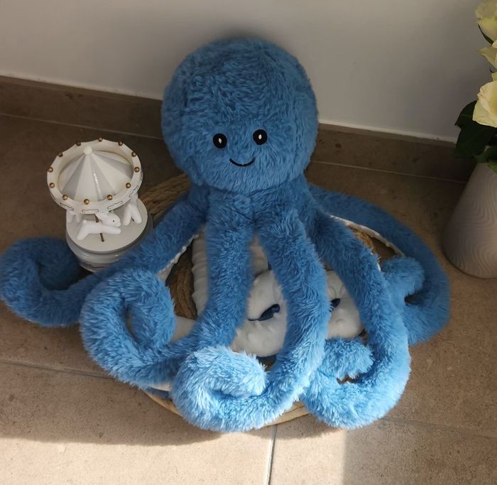 Pieuvre 🐙 Peluche Doudou Bébé Bleu & Blanche Grosse tête avec 8 tentacules Garder sur une étagère en décoration Je l'ai lavée avant la vente avec une lessive hypoallergénique et sensitive 🫧🧼 Elle est bien blanche !! Hauteur posé 21cm Envoie sous 48h hors week-end/fériés Pensez au lot pour des Réductions ✨️
