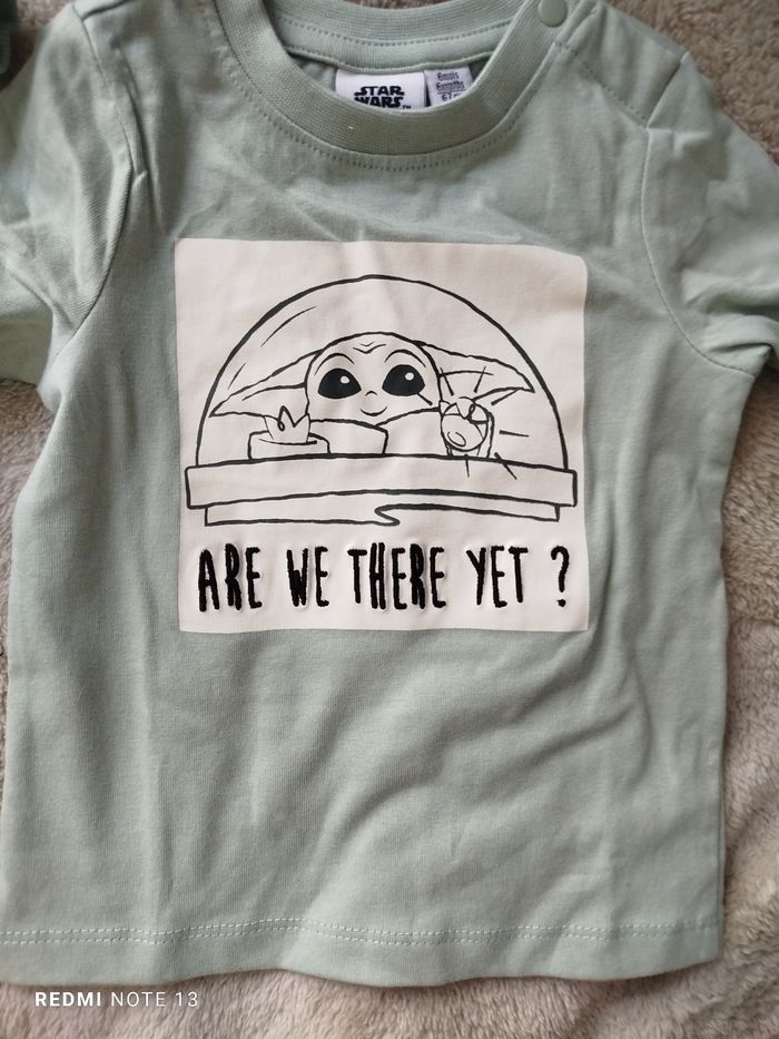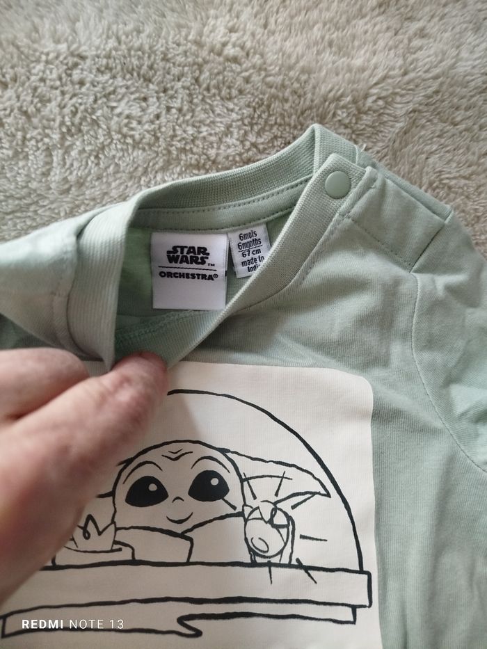 #kytie6moisgarcon. Tee-shirt manches longues taille 6 mois de marque star wars neuf vert d eau ref 89