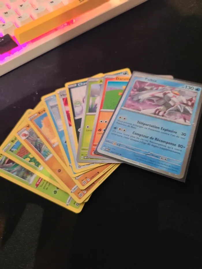🎴 Boosters Mystère Pokémon – 10 cartes Je propose à la vente des Boosters Mystère Pokémon composés de 10 cartes chacun, préparés avec soin et emballés individuellement. Chaque booster contient au minimum une carte rare, avec une répartition équilibrée entre boosters japonais/coréens et français. 🔀 RÉPARTITION DES BOOSTERS 🎌 50% Boosters Japonais ou Coréens 👉 Hit garanti dans chaque booster : ⭐ 35% de chance : Carte V 💥 35% de chance : Carte EX / X 🎨 30% de chance : Carte AR (Art Rare) avec chance d'alternative ! 🇫🇷 50% Boosters Français 👉 Le Hit n’est pas garanti, mais les probabilités sont les suivantes : ✨ 30% de chance : Carte holographique ou promotion 💥 40% de chance : Carte EX ou V 🌈 30% de chance : Carte de rareté supérieure (VMAX, Full Art ou AR) 📦 INFORMATIONS COMPLÉMENTAIRES ✔️ Boosters scellés individuellement ✔️ Vente possible à l’unité ou en lot ✔️ Convient aussi bien aux collectionneurs qu’aux ouvertures plaisir ✔️ Envoi rapide et soigné 💰 PRIX ➡️ 3.80€ le Booster ➡️ Prix négociable pour l’achat de plusieurs Boosters 📩 N’hésitez pas à me contacter pour toute question ou pour composer un lot personnalisé.