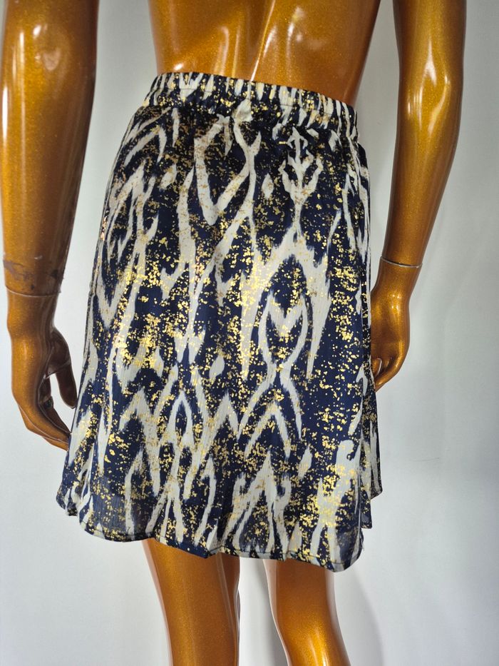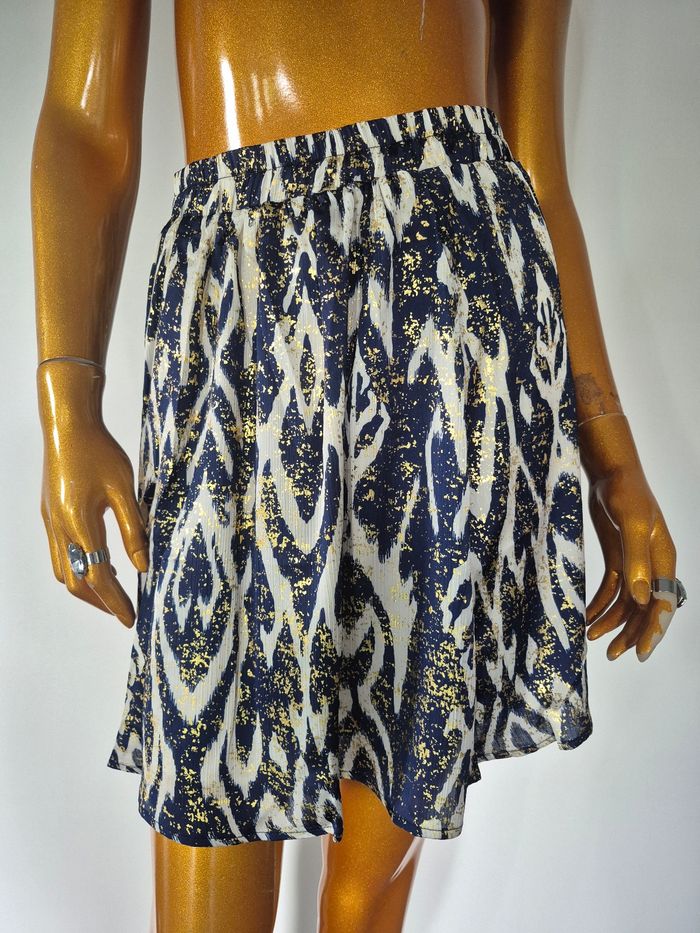👗 Jupe Courte Femme Couleur Bleue et Dorée 🔎 Taille M/L 📏 Longueur de la jupe : Environ 47 cm 💠 100% Polyester 🏷 Neuve avec étiquette, sous blister 🚚 Envoi Rapide et Soigné