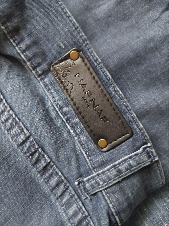 Jean droit avec empiècement effet used destroy stone washed T38 Naf Naf TBE 👖 - photo numéro 1
