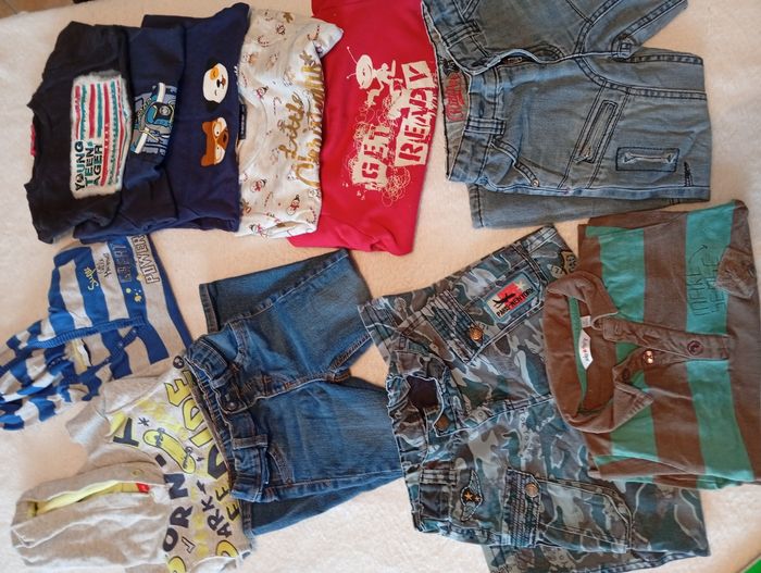 Bonjour 😊 A vendre lot de vêtements garçon - 3 jeans - 2 sweats à capuche - 4 sweats - 1 pollo Vêtement en très bon état Taille : 3-4ans Marques : Tissaia , pat & ripaton, in extenso, kidkanaï , orchestra , Kiabi et gemo