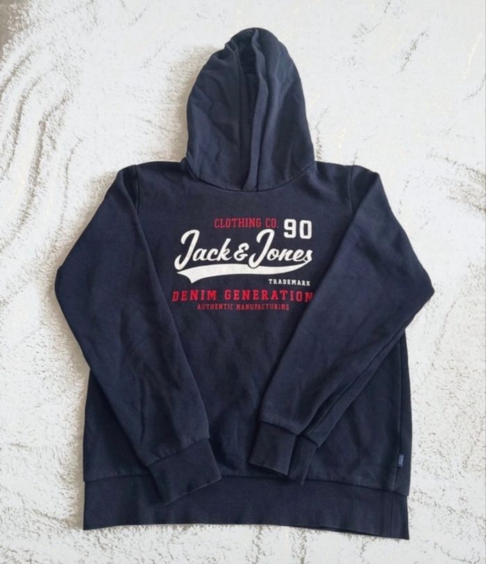 Sweat enfant Jack & Jones – Taille 12 ans 🔵 Bleu marine | 🔴 Logo rouge & blanc | 👦 Style streetwear - photo numéro 1