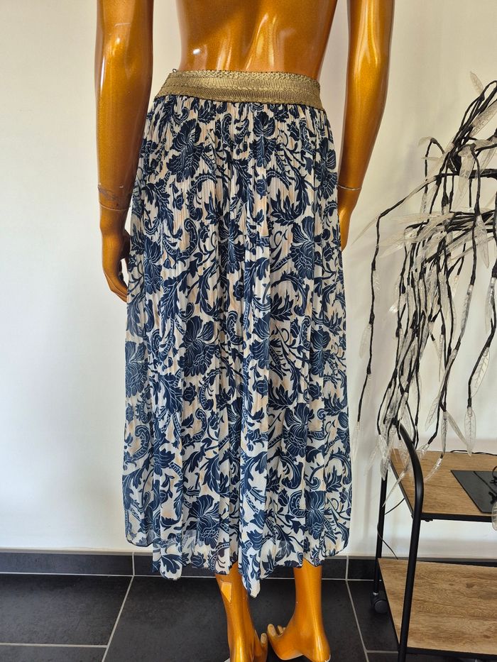 👘 Jupe Longue Bleue et Blanche Femme 🔎 Taille Unique du 34 au 38 📏 Longueur de la jupe : environ 81 cm 💠 100% Polyester 🏷 Etat neuf avec étiquette, sous blister 🚚 Envoi Rapide et Soigné