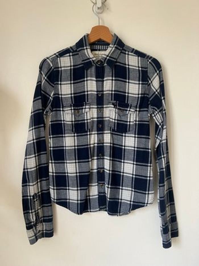 Chemise à carreaux bleu marine Abercrombie coton - photo numéro 1