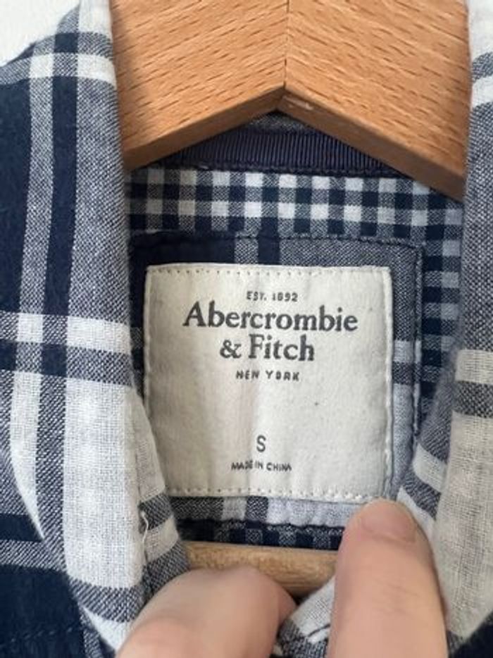 Chemise à carreaux bleu marine Abercrombie coton - photo numéro 3