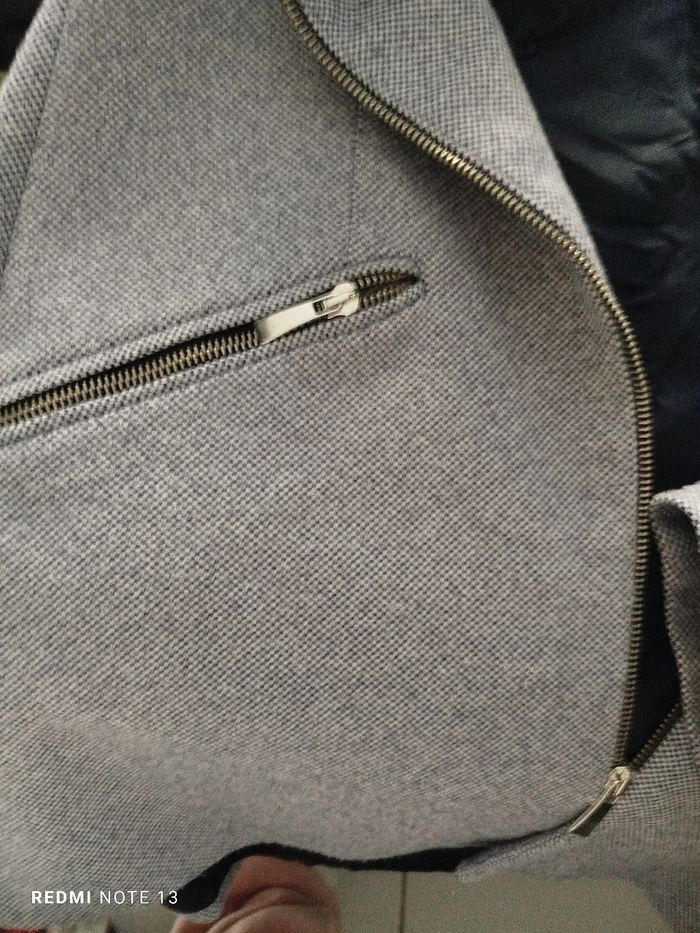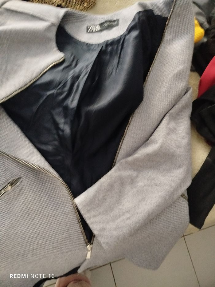 #kytieLfemme. Veste taille L de marque Zara bleu blanc nid d abeille 🐝 doublé tien chaud zippé poche avant zippée en excellente état comme neuve mesure des épaules 42 cm des aisselles 50 cm hauteur 80 cm tissu très doux la veste et 100 % polyester et l'intérieur et 100 % acétate ref 09