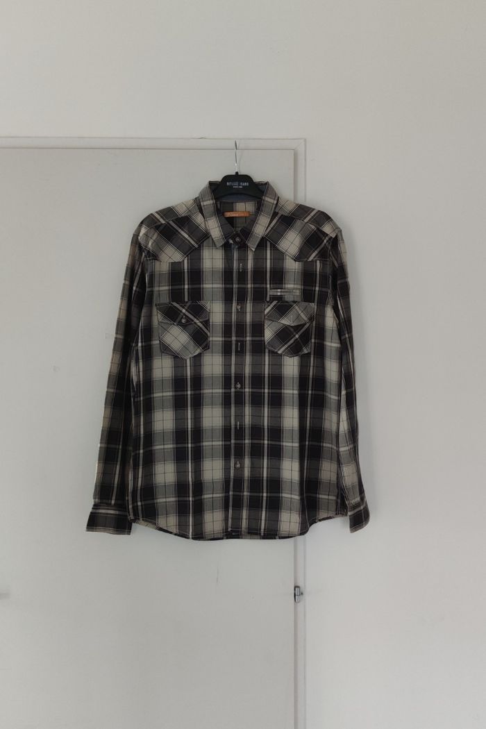 Chemise manches longues à carreaux de couleur noire et blanche, taille L et de marque Casual by Gémo. Chemise en coton, neuve très agréable à porter pour homme. Expédition rapide Tour de taille 104 cm Largeur épaule 48 cm Longueur manches 65 cm Longueur totale 75 cm Prix 12€