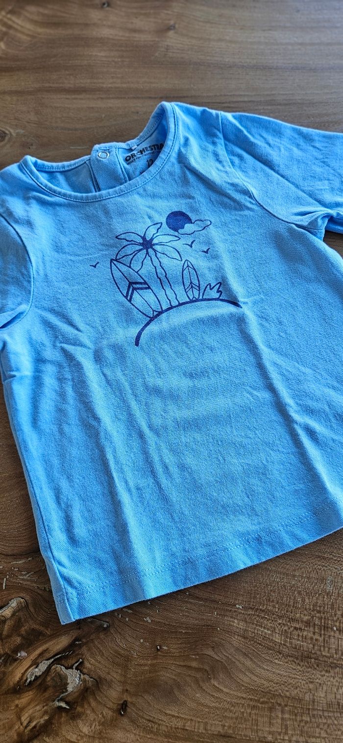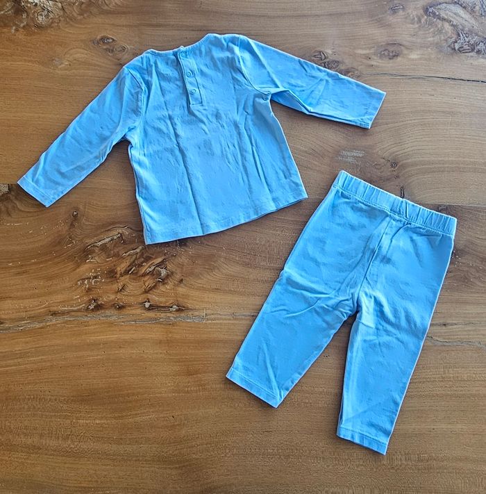 Pyjama léger bébé garçon bleu. Dessin imprimé sur le devant. Ouverture pressionnée dans le dos. Pantalon élastique à la taille. Porté mais reste en très bon état. Aucune tâche, ni trou 👌