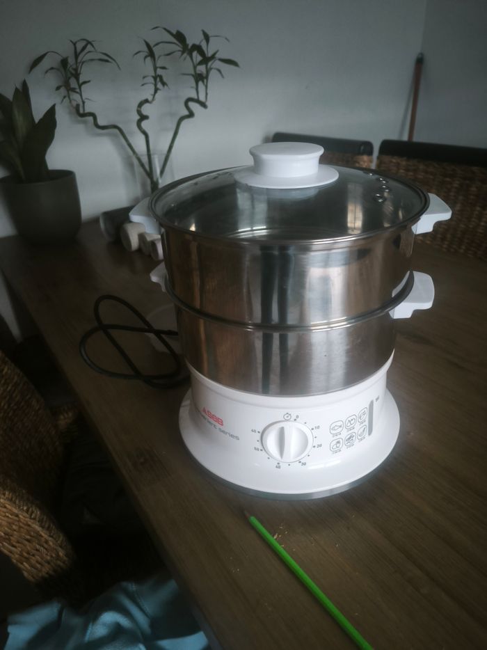 Bonjour acheté en décembre 2025 je vend un auto cuiseur en très bonne état avec son bol a riz idéal pour vos cuisson de légumes en vapeur . retrait a domicile si possible