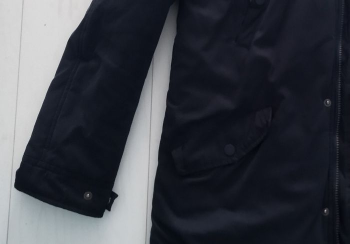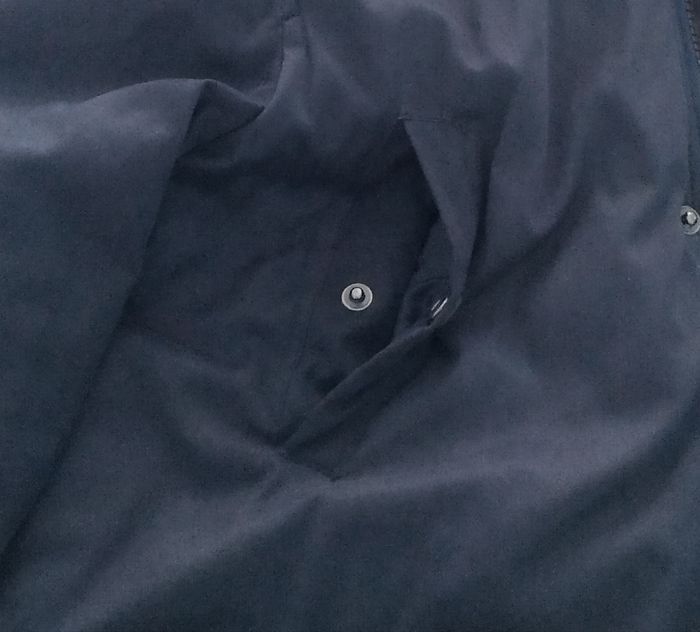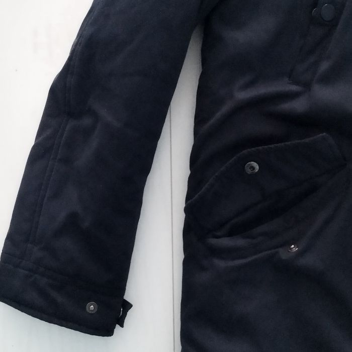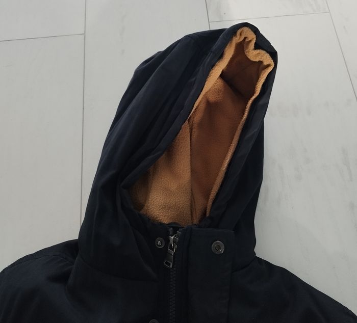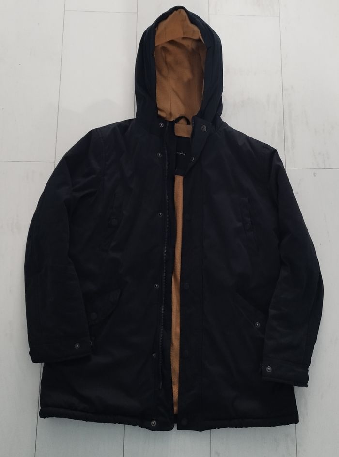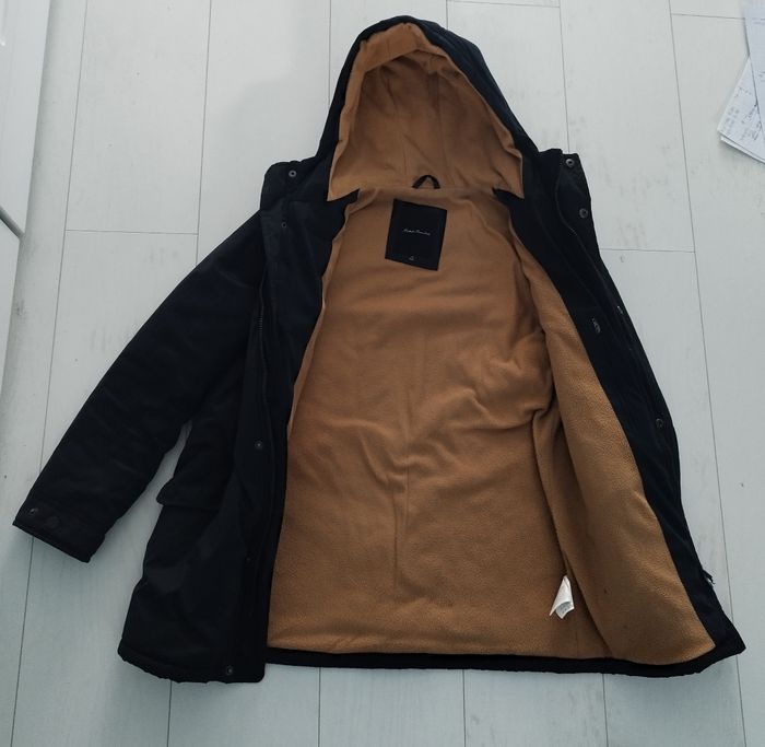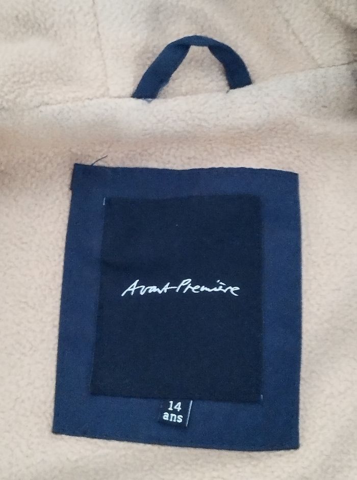 Capuche attenante, intérieur couleur moutarde, 2 poches latérales à boutons, marque avant première de chez Les galeries Lafayette