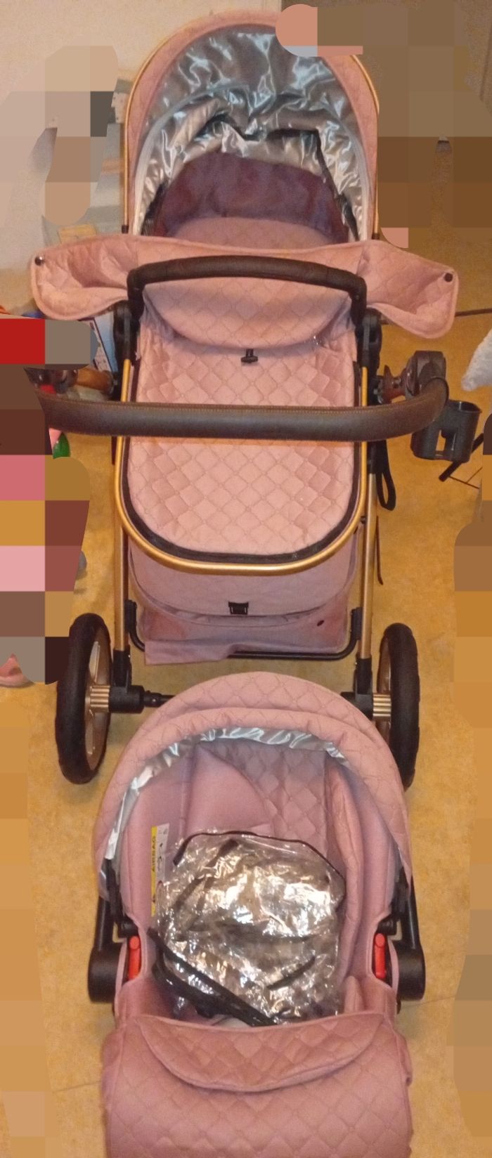 ⚠️Pas d'envoi ,remise en main propre uniquement⚠️ Bonjour , Je vends cette poussette rose 3 en 1 En parfait état ( Neuve ) Paiement en espèce uniquement .