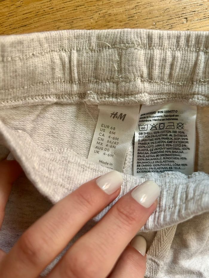 Joli lot de deux pantalons souples et confortables pour bébé fille en taille 6 mois, parfaits pour le quotidien. Le lot comprend : 1 Pantalon beige pâle chiné (H&M) : Un basique indispensable en molleton léger, très doux, avec une taille élastiquée et un petit lien de serrage décoratif. 1 Pantalon gris chiné (Orchestra) : Un modèle craquant avec deux petits cœurs brodés au niveau des genoux et des revers aux chevilles pour un look stylé. Détails importants : Marques : H&M et Orchestra. Taille : 6 mois. État : Très bon état général, les couleurs sont bien conservées et le tissu n'est pas distendu. Maison non-fumeur. Envoi rapide. D’autres articles bébé disponibles. #lotbebe #fille6mois #orchestra #hm #pantalonconfort #bebefille