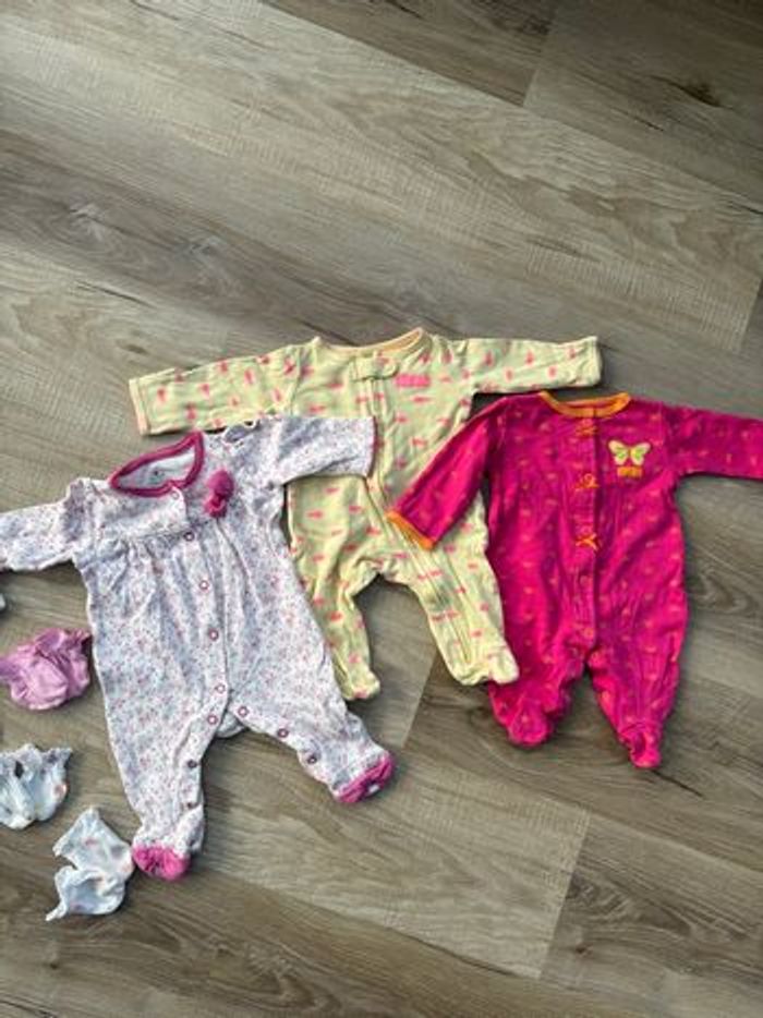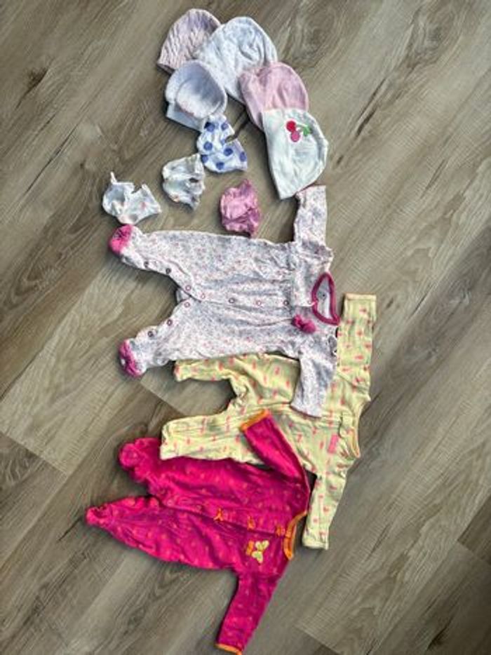 Lot vêtements/body/pyjamas naissance et 1 mois fille - photo numéro 1