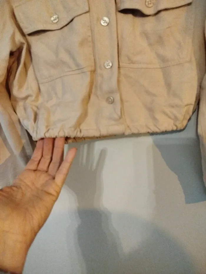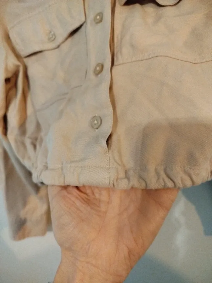 Très bon portée, excellent état. Coupe courte (arrive à la taille). Elle ne s'ouvre pas entièrement car elle est cousue en bas, bas de chemise avec élastique.