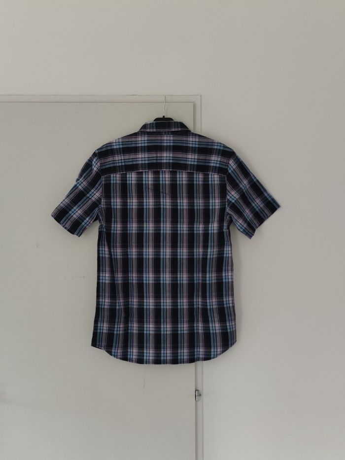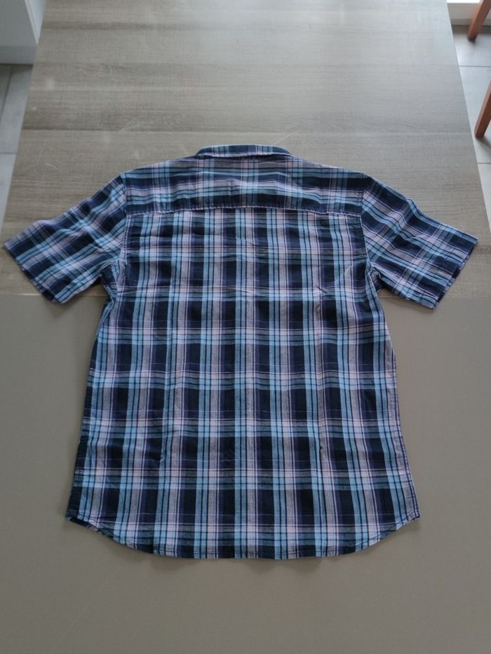 Chemise de couleur bleu et noire, coupe classique et manches larges avec poches à double rabat. Les boutons noirs complètent le look, tandis que le logo Lee tissé est accroché à la poche poitrine gauche. Chemise en coton et élasthanne, taille M pour homme. Expédition rapide Tour de taille 102 cm Largeur épaule 46 cm Longueur manche 26 cm Longueur totale 75 cm Prix 25€