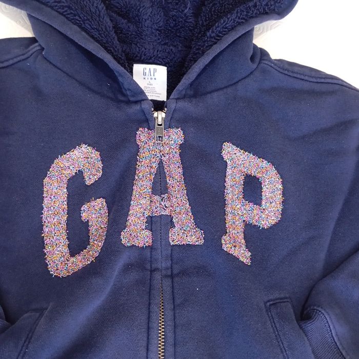 Sweat à Capuche GAP Kids Bleu Marine Fourré Lettres Paillettes Zippé Taille L (10 ans) 140 Cms - photo numéro 5