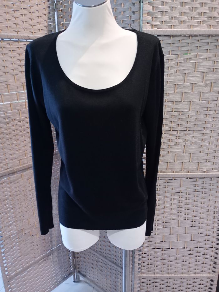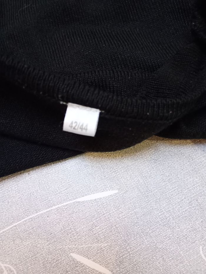 Pull noir, classique. Taille : 42/44. Pas de marque. Longueur : 64 cm Largeur entre aisselles : 56 cm Longueur manches : 67 cm Très bonne état