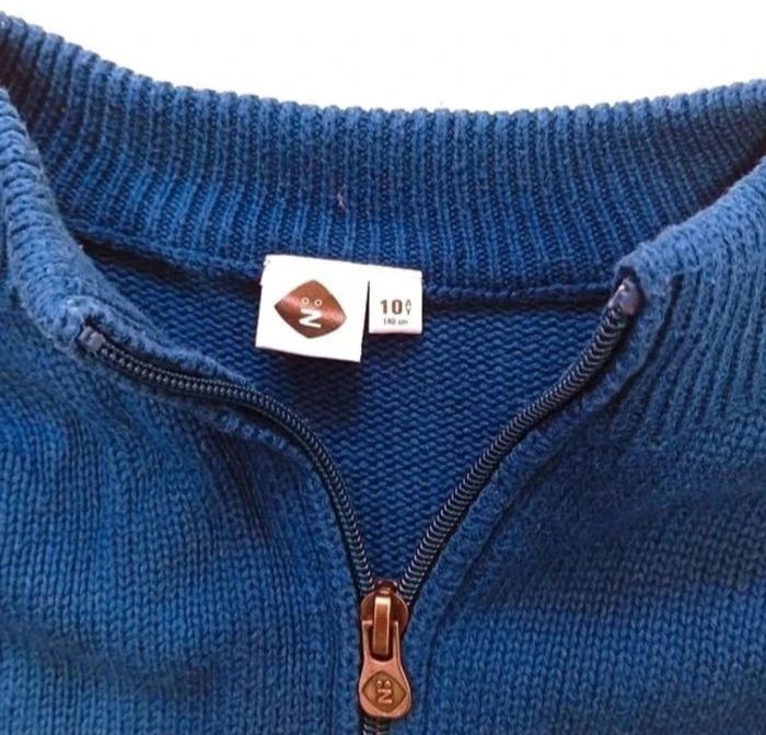 Lot de 1 sweat a capuche zippé et 1 gilet zippé. Sweat a Capuche Zippé Marque Levi's Couleur Bleu Marine Taille 10 ans 74% coton - 26% polyester La couleur bleue s'est estompée à l'intérieur de la capuche. (Voir photo) Le sweat a été porté quelques fois, il présente signes d'usure mais il reste en bon état Pull / Gilet Zippé Bleue Pour Garçon Marque Z Taille 10 ans 140 CMS En très bon état