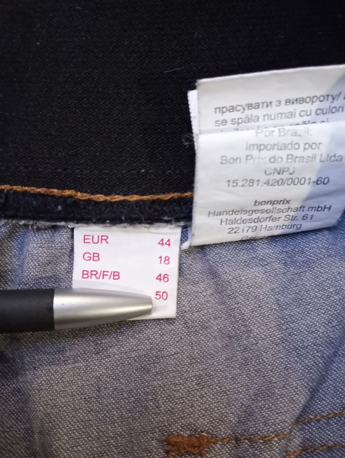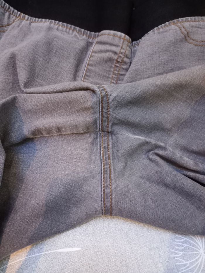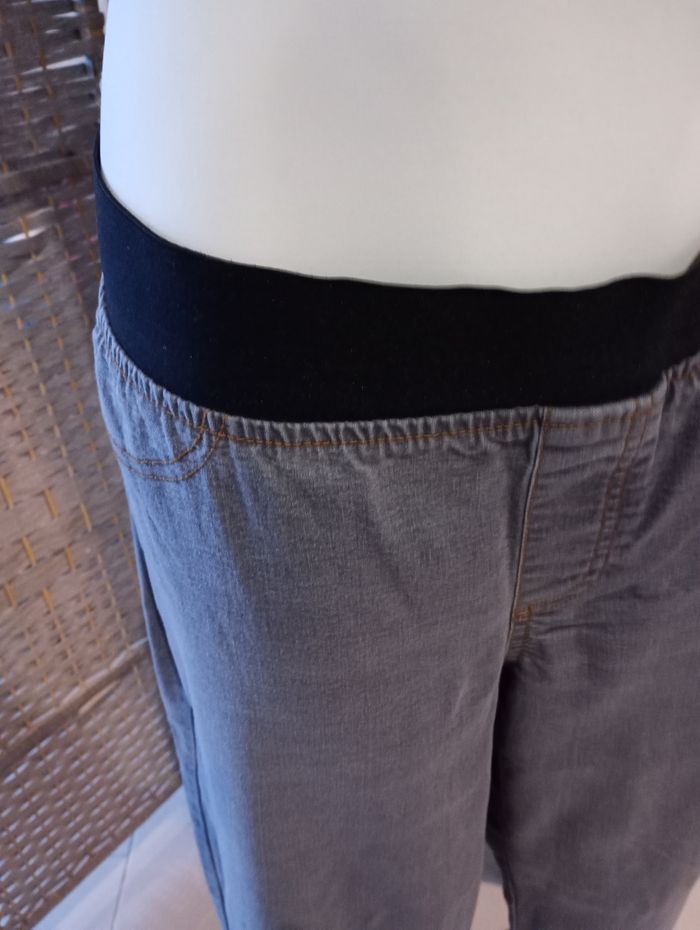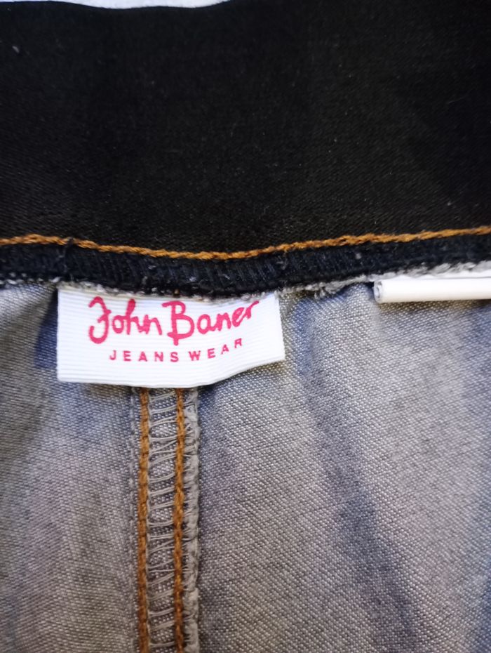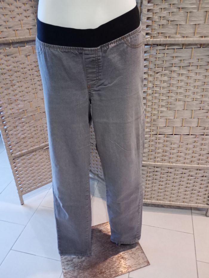 Tregging (pas de bouton ni tirette) en jeans, gris clair. Taille élastique. Longueur : 101 cm. Largeur : 41 cm. Entrejambe : 76 cm. Taille : EUR 44 F/B 46. Marque : John Baner. Très bon état.