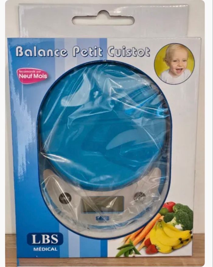 balance de cuisine Petit Cuistot LBS MÉDICAL, idéale pour peser les aliments de bébé avec précision afin de préparer de délicieuses recettes tout en respectant son équilibre alimentaire. - Type de produit : Balance de cuisine - Marque : Petit Cuistot - Capacité totale : 5 kg - Précision : 1g - Unités : Gramme ou millilitre - Grand écran LCD - Arrêt automatique après 2 minutes sans utilisation - Piles fournies : 2 LR3 État neuf jamais déballé À savoir de la lessive a coulé sur la boîte mais aucun dégât juste un peu collant mais très bonne odeur