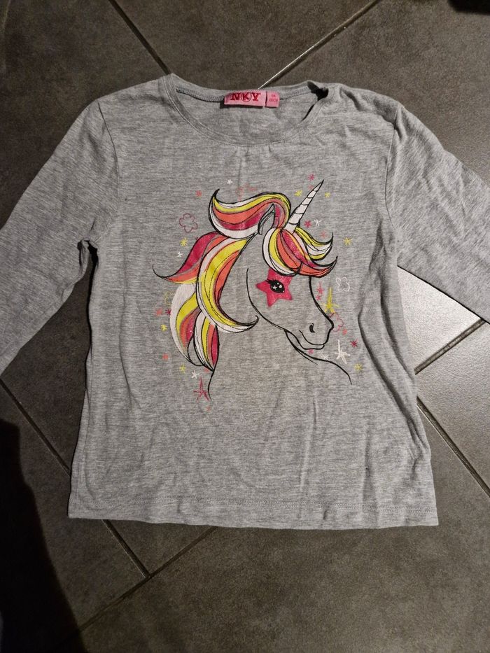 T-shirt manches longues fille 👧 Taille 6 ans Marque : NKY Gris motif licorne Réduction sur les lots activé 😊 Bac2
