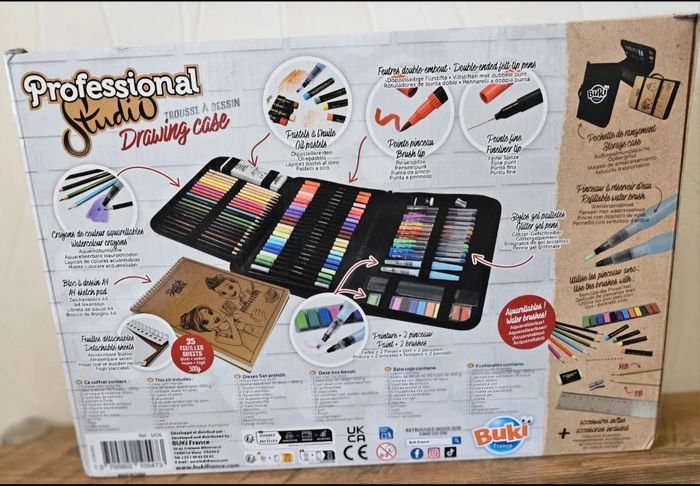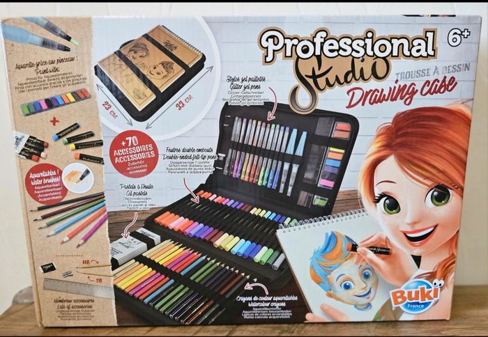 Vend trousse a dessin professional studio drawing case, jamais ouverte neuf car doublon de la marque buki France a partir de 6 ans