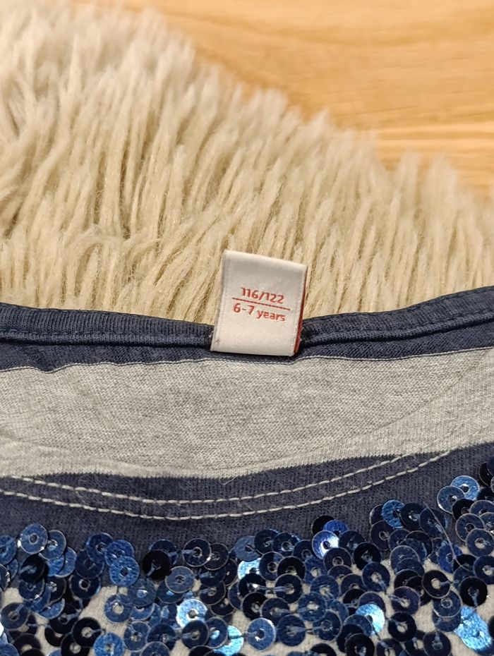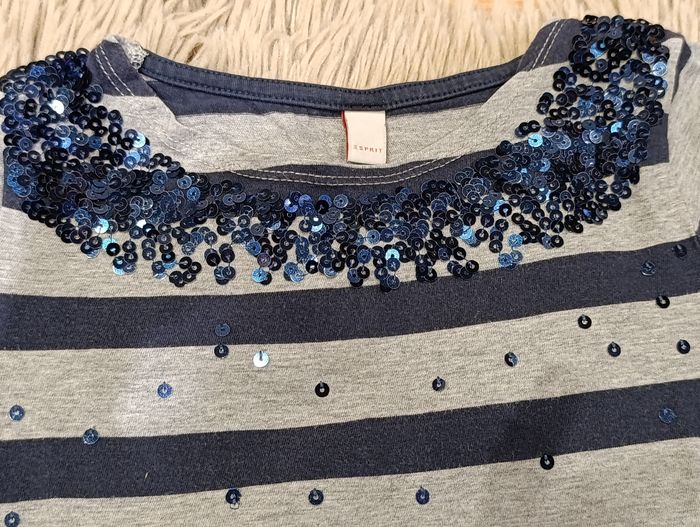 T-shirt manches longues Rayé gris et bleu marine Sequins au col Taille 6 - 7 ans 116-122cm Très bon état Esprit #liibysixans #liibyseptans #6ans #7ans #tshirt #haut #sequin #esprit
