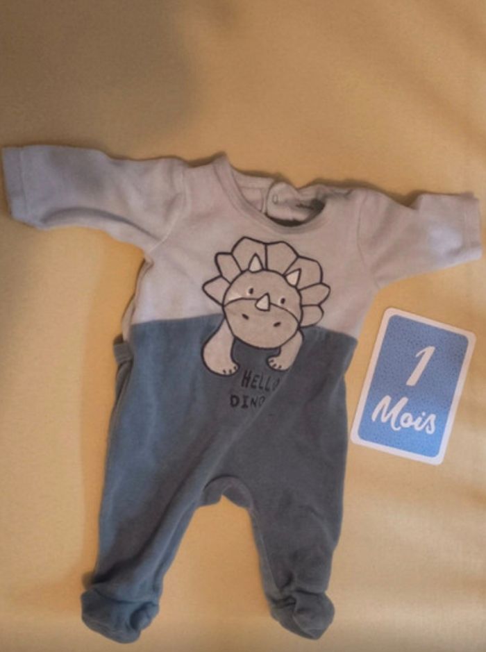 Pyjama chaud garçon motif Dino. Porté quelques fois mais toujours en bon état. 1 mois.