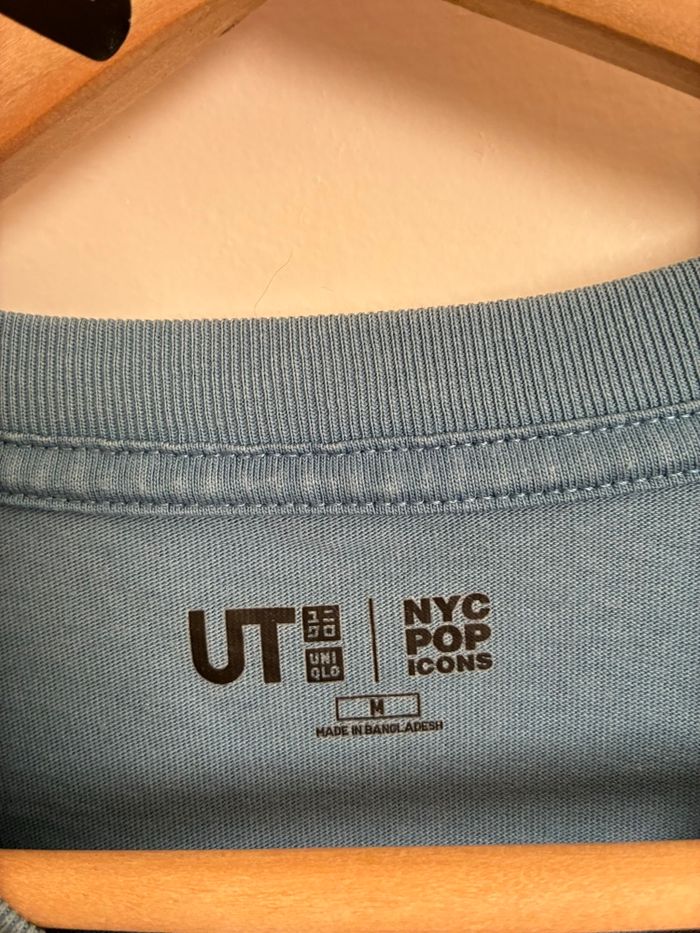 Je vends un t-shirt Uniqlo bleu issu de la collection Pop Art Icons NYC, collaboration avec Jean-Michel Basquiat. Taille M. ✔️ Bon état, porté mais bien entretenu ✔️ Impression Basquiat intacte ✔️ Coupe confortable, style street / art contemporain