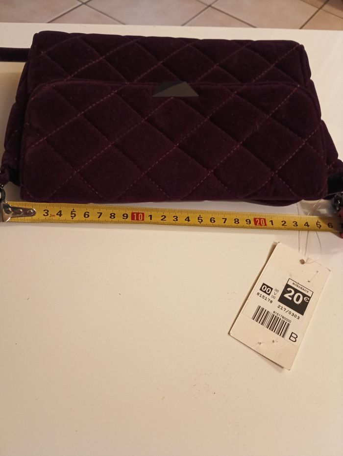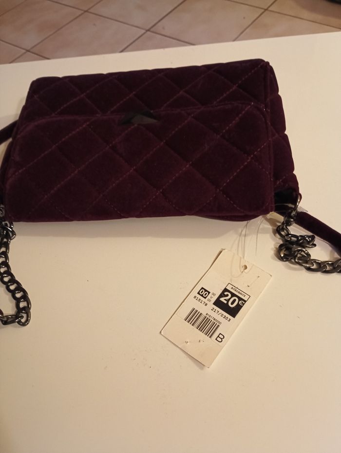 Très beau sac à main en velours bordeaux 26 cm sur 17 cm