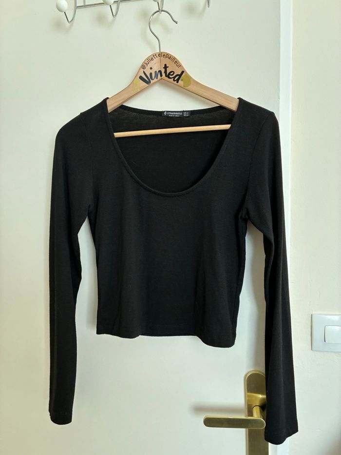 Je vends un top manches longues noir de la marque Stradivarius, avec col rond. Taille M. ✔️ Bon état, bien entretenu ✔️ Coupe basique et facile à assortir ✔️ Idéal pour le quotidien ou en superposition 📦 Envoi rapide et soigné 💬 Disponible si tu as des questions ou besoin de photos