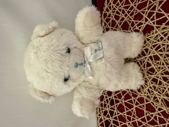 Doudou Peluche Ours Boulgom Blanc Bleu Vintage - photo numéro 1