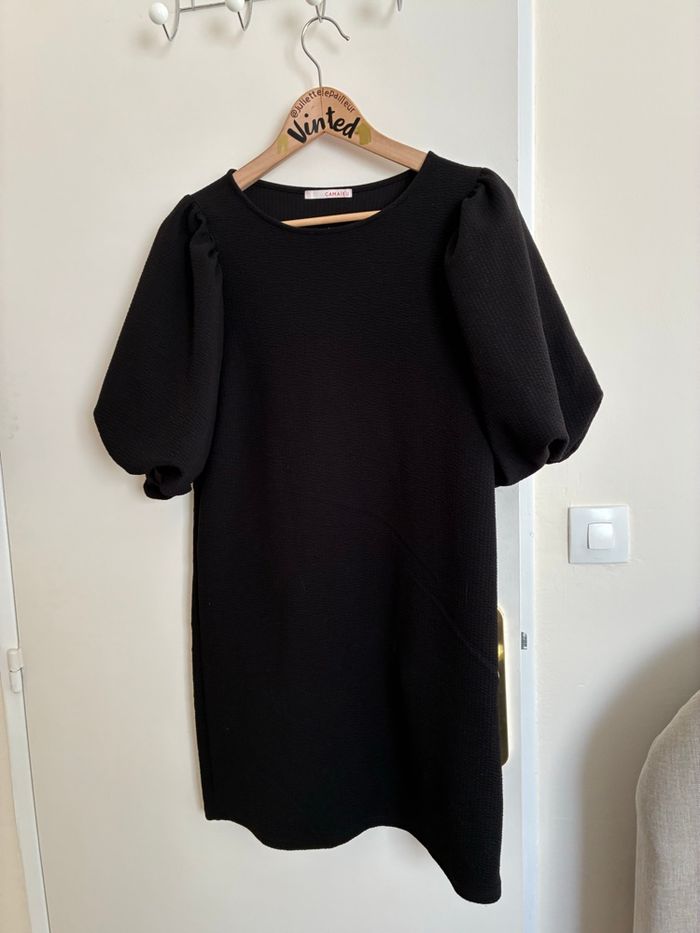 Je vends une robe noire courte de la marque Camaïeu, avec manches bouffantes. Taille M. ✔️ Très bon état, peu portée ✔️ Coupe féminine et élégante ✔️ Facile à porter au quotidien comme en soirée 📦 Envoi rapide et soigné 💬 N’hésite pas à me contacter pour plus d’informations
