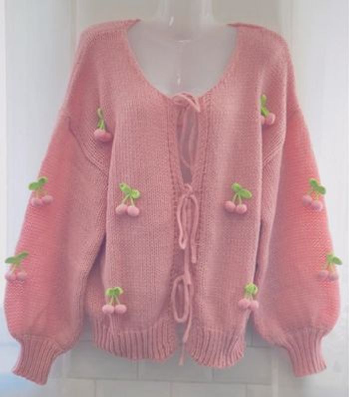 Cardigan pull à lacets  décoré avec des raisins en crochet