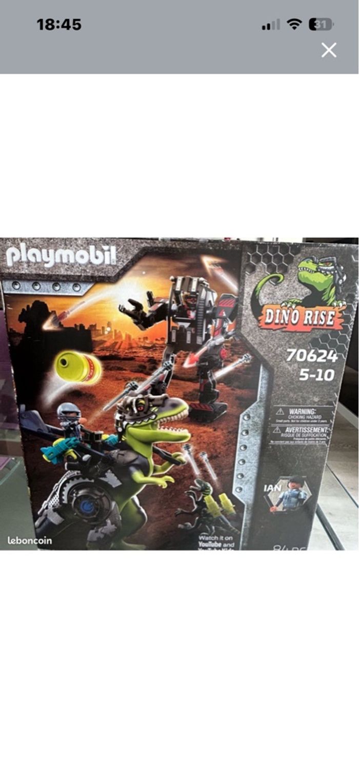 Je vends un set Playmobil 70624 « Dino Rise — Tyrannosaure et robot géant ». Le jouet est neuf, jamais ouvert, encore dans sa boîte d’origine. Idéal pour un cadeau. • Contenu : T-Rex + robot géant + accessoires + 2 figurines, 84 pièces. • Âge recommandé : 5–10 ans. • A retirer sur saint etienne ou envoi possible Prix : 35 euros non négociable