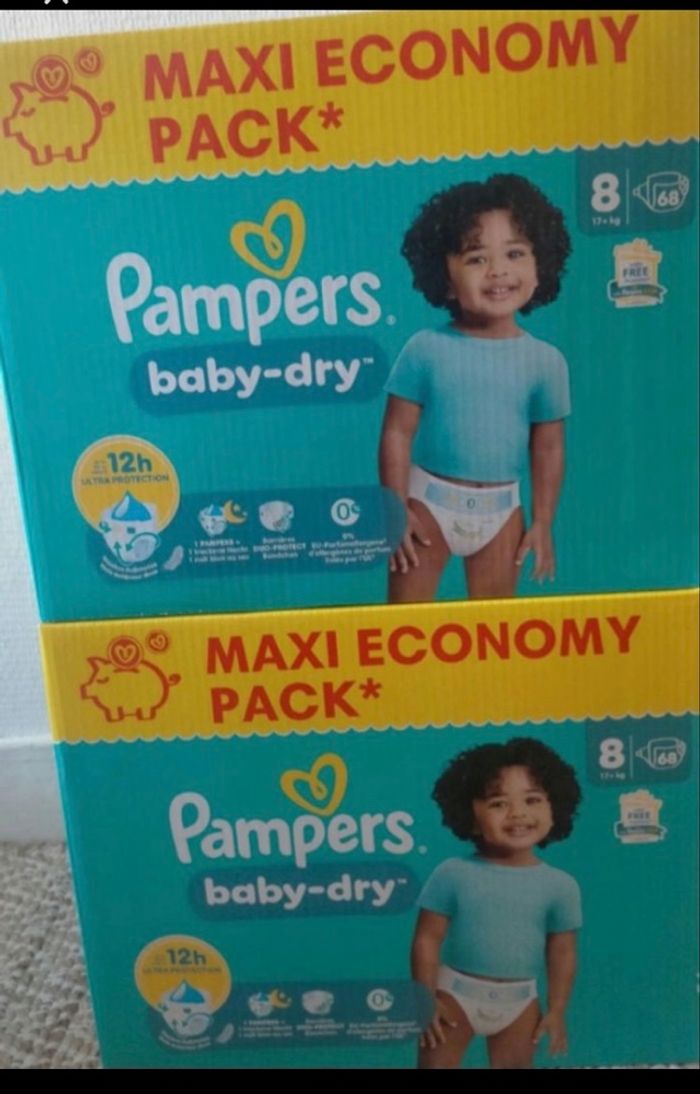 Couches Pampers, baby Dry T8, les deux cartons de couches, j’envoie le jour même de l’achat