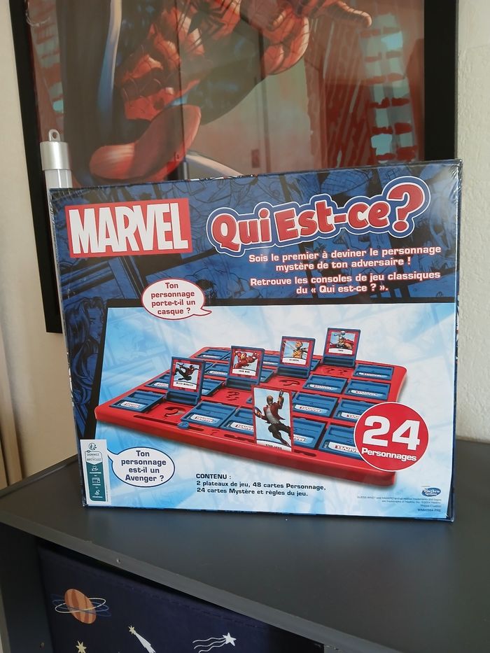 Le célèbre jeu de déduction débarque dans l'univers MARVEL. 24 personnages issus des bandes dessinées t'attendent dans ce Qui est-ce ?, de Hulk à Iron-Man, en passant par Spider-Man ou Black Widow tente de retrouver QUI cache ton adversaire...assure-toi de poser les bonnes questions pour gagner la partie ! Neuf sous blister.
