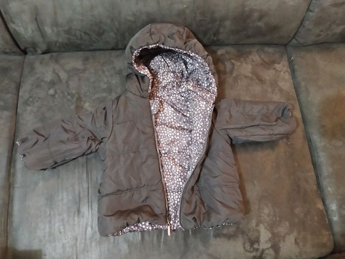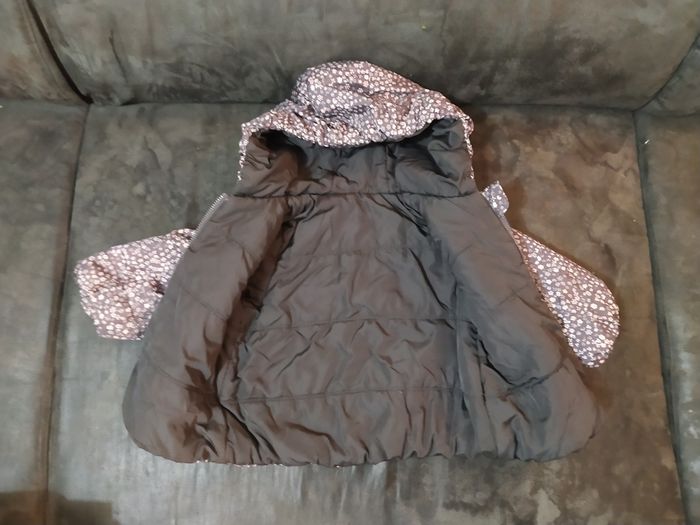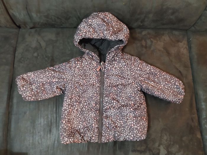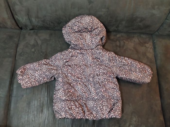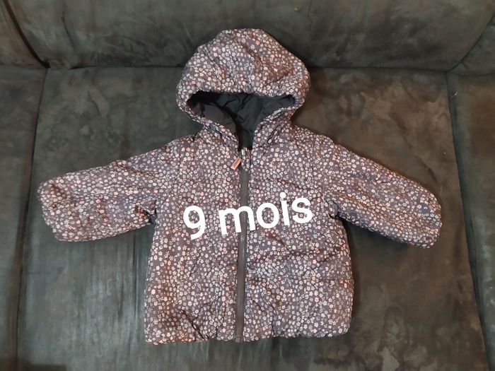 ⚠️envoi à partir de 5€ d'achat⚠️ Doudoune fleurie réversible taille: 9 mois longueur épaule à hanche: 33 cm marque: Verbaudet couleurs: 1 côté marron avec motif petites fleurs, 1 côté uni marron 1 ferme éclair, l'attache est un peu abîmée (voir rond orange) capuche, 100% polyester, Légère et chaude Bon état ⚠️ envoi à partir de 5€ d'achat⚠️