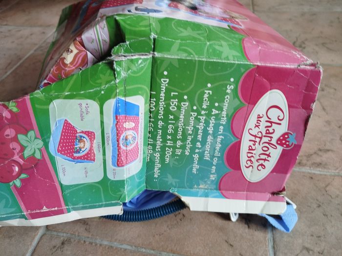 🍓✨ Lit/fauteuil gonflable convertible charlotte aux fraises avec pompe incluse 🍓✨ Lit -> Longeur 150 cm , largeur 66cm, hauteur 20 cm 🍓✨ Fauteuil -> Longeur 100 cm , largeur 66 cm , hauteur 48 cm 🍓✨ Neuf jamais utilisé juste le carton abîmé