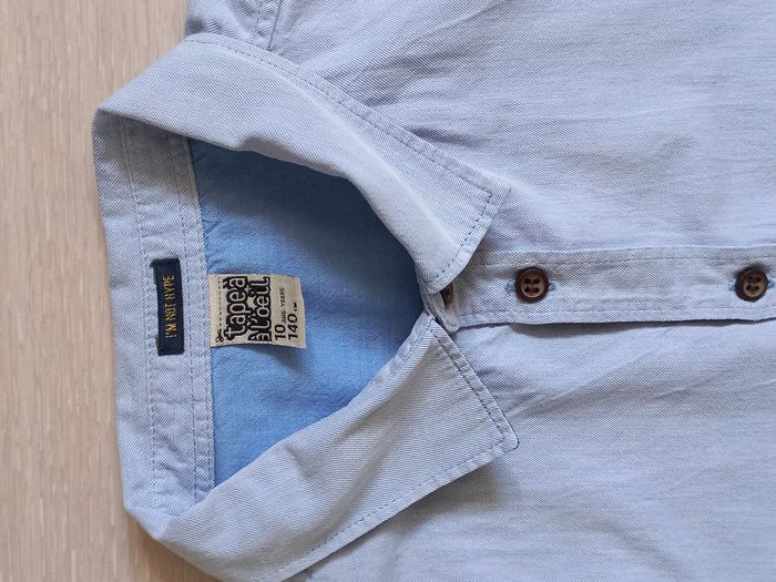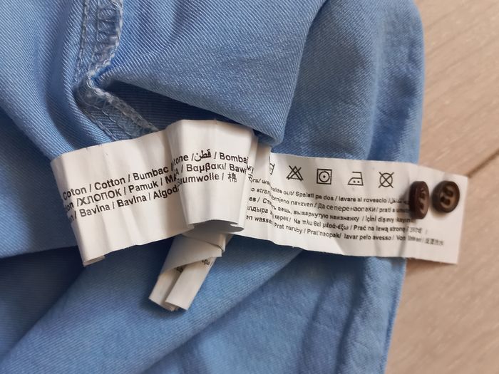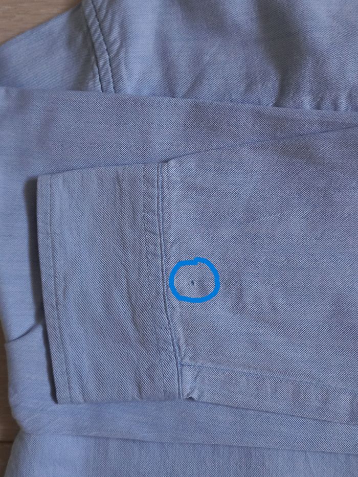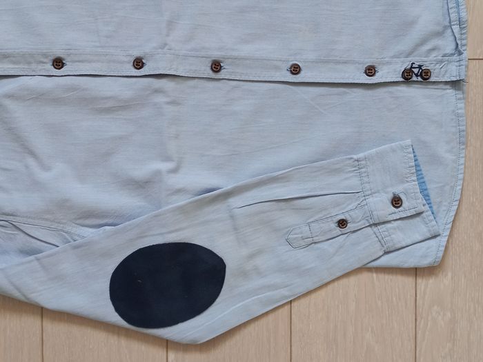 chemise manches longues en coton. empiècements au niveau des coudes. A noter : 1 petit défaut en bas d'une manche, près du poignet (voir photo)