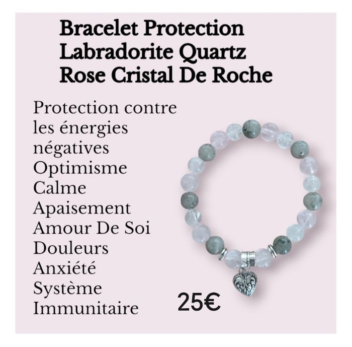 Bracelet en pierres naturelles Labradorite Quartz Rose Cristal De Roche neuf