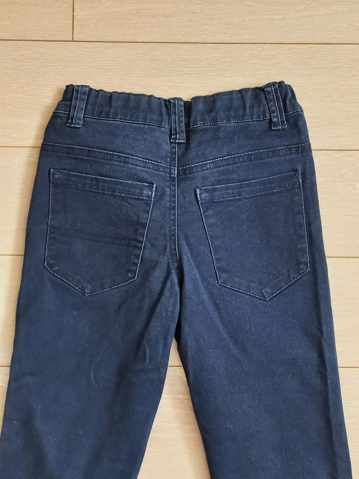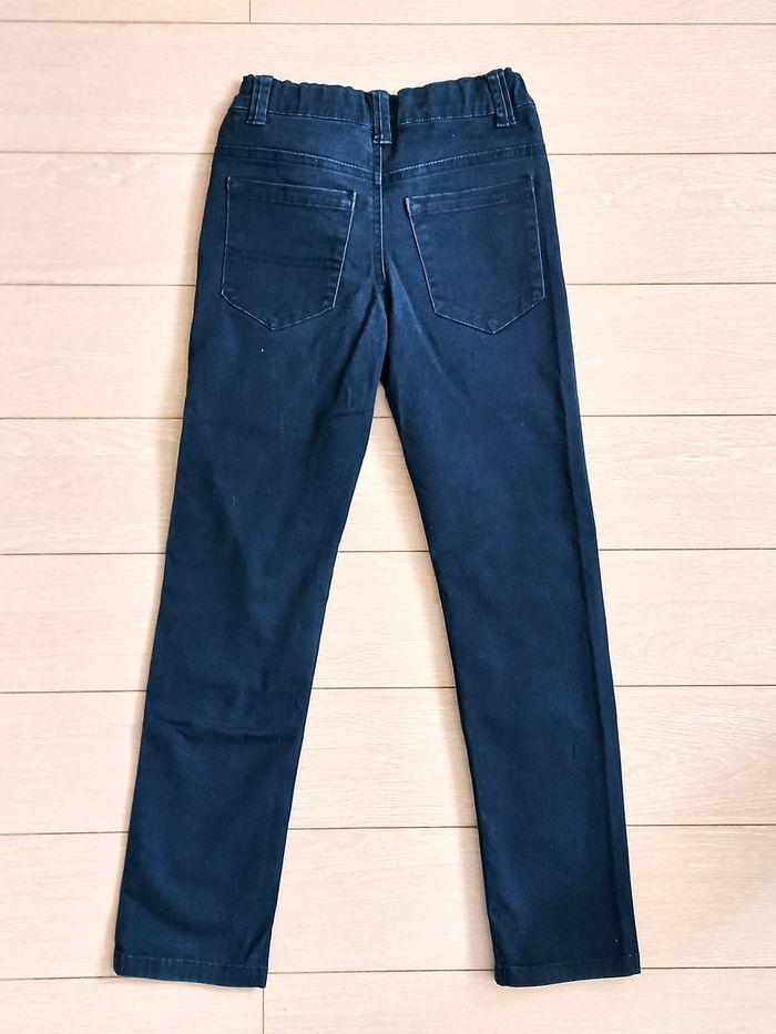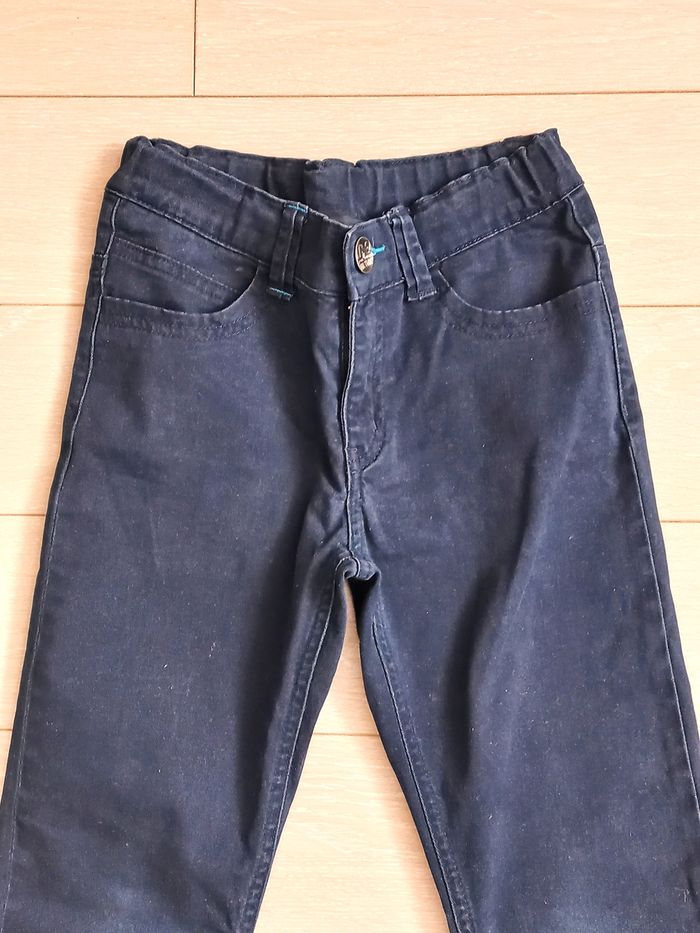 pantalon slim avec taille ajustable, couleur bleu marine. En coton et élasthanne. Genoux légèrement blanchis